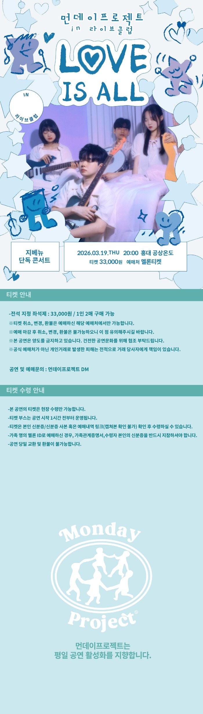 | 공연 관련 문의 | 먼데이프로젝트 인스타 DM | ||||||||||||
