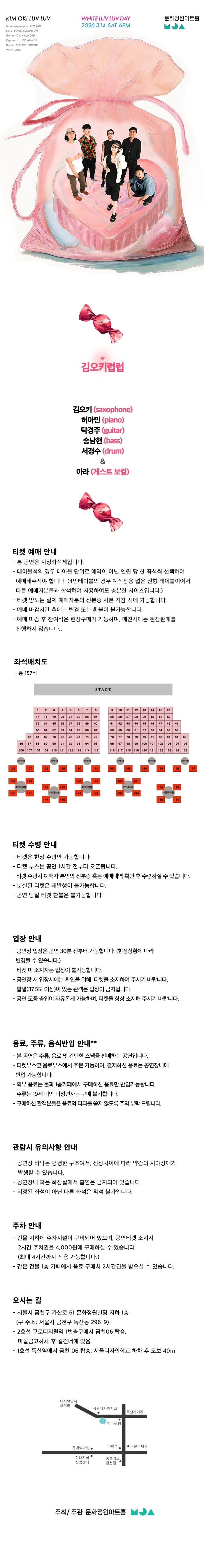 사랑이 넘치는 김오키럽럽 화이트데이 공연 〈 김오키 (saxophone) 허아민 (piano) 탁경주 (guitar) 송남현 (bass) 서경수 (drum) 게스트 보컬 아라 〉