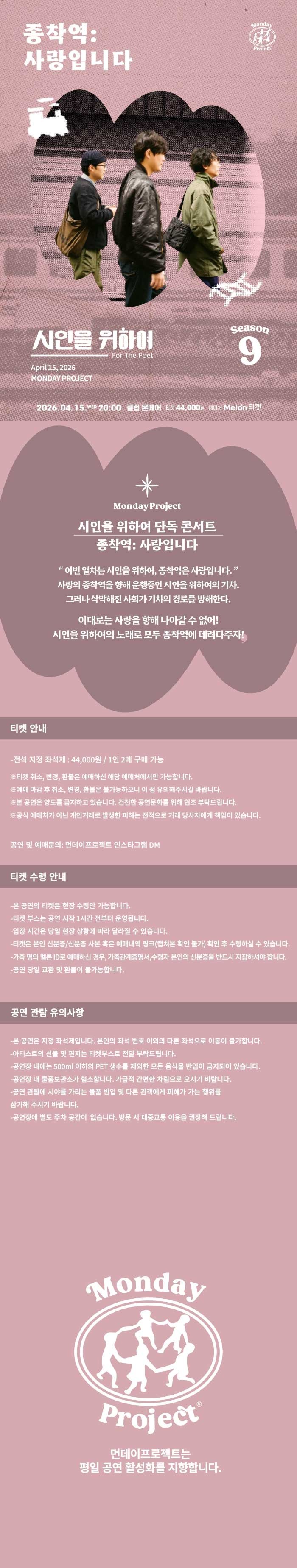 인증예매 청년패스먼데이프로젝트 시즌9 [시인을 위하여 단독 콘서트 ‘종착역:사랑입니다’]