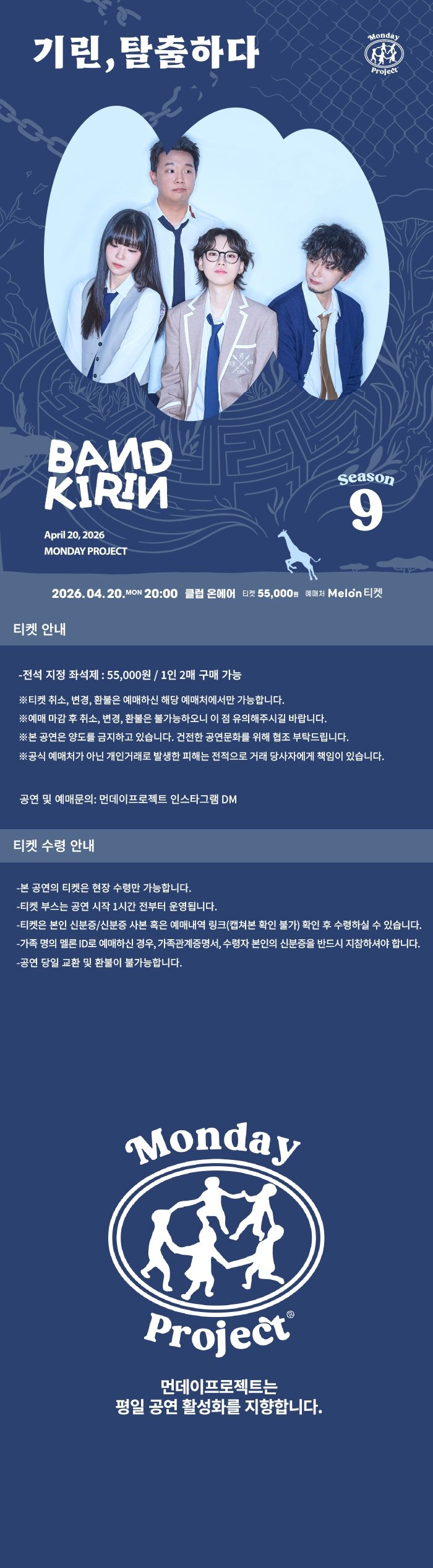 인증예매 청년패스먼데이프로젝트 시즌9 [밴드기린 단독 콘서트 : 기린, 탈출하다]