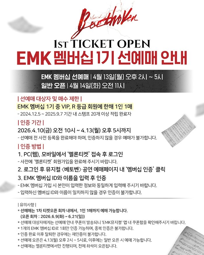 ※ 매수제한 : 회차별 1인 4매 (선예매 회원별 1인 1매 포함)