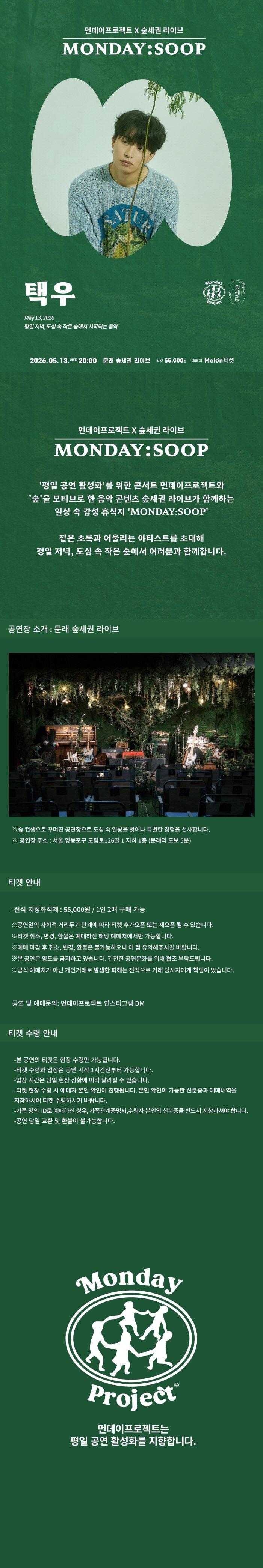 인증예매 청년패스먼데이프로젝트 X 숲세권 MONDAY:SOOP [택우 단독 콘서트]