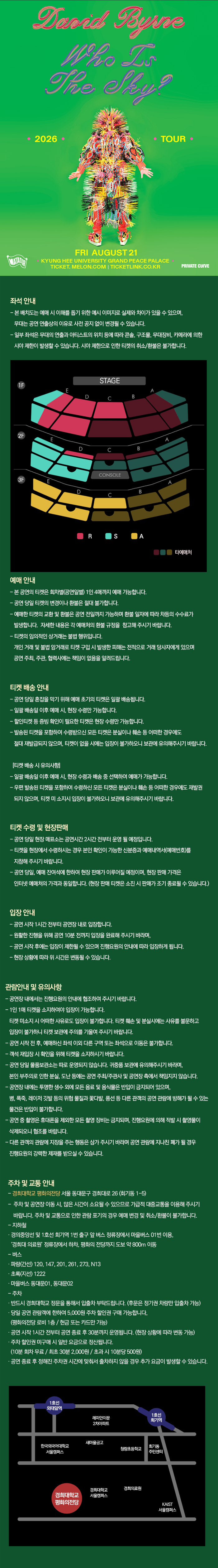 데이비드 번 첫 단독 내한공연 David Byrne Who Is The Sky? Tour