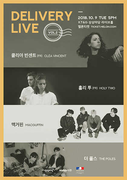 해외 가장 핫한 뮤지션을 홍대로 ‘딜리버리’합니다.프랑스 현지 음악을 상상마당 라이브홀에서 즐겨보세요.